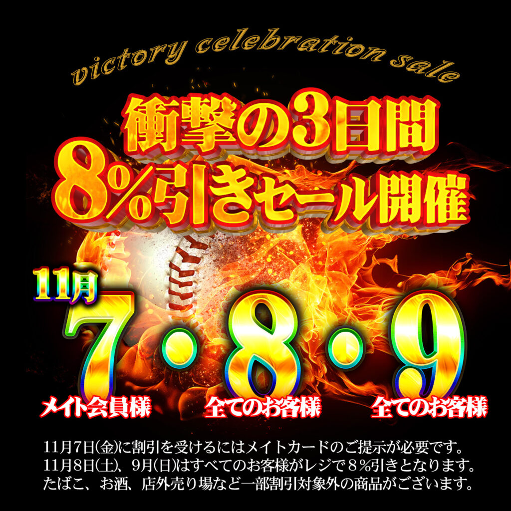 2025.11.06お知らせ優勝おめでとう8%引きセール開催のご案内