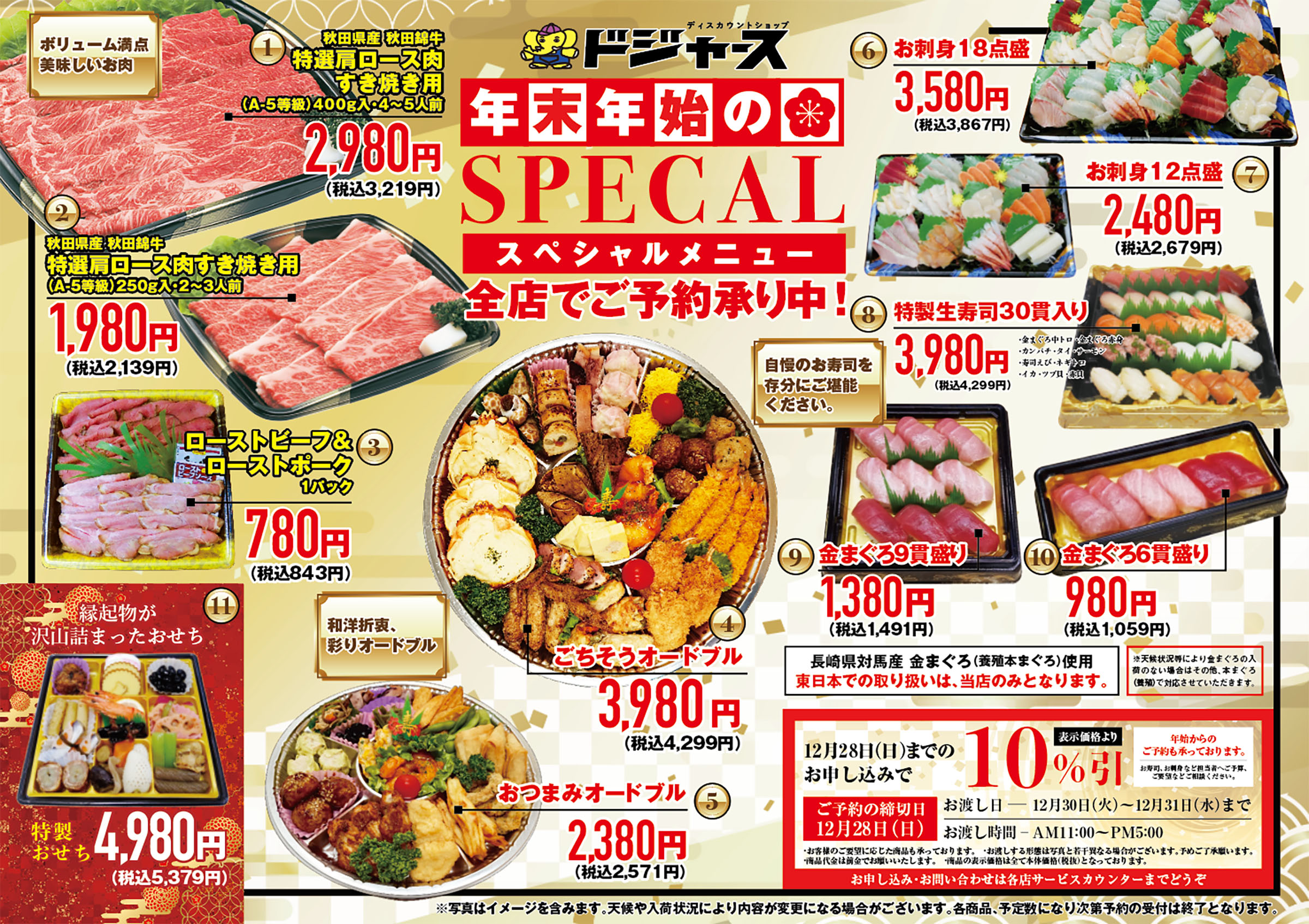 各店サービスカウンターにて年末年始スペシャルメニューのご予約を承り中です。