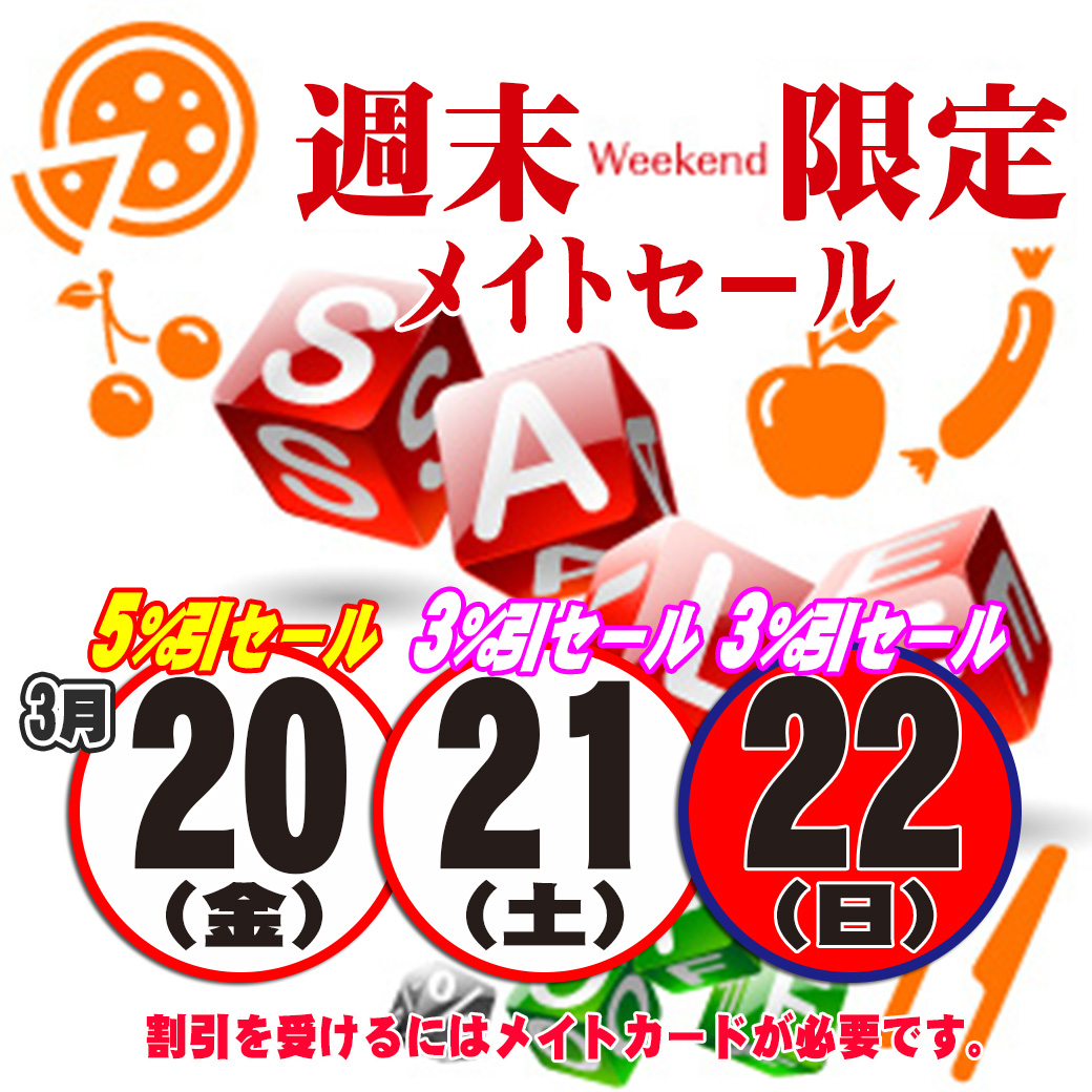 週末メイトセール開催のご案内